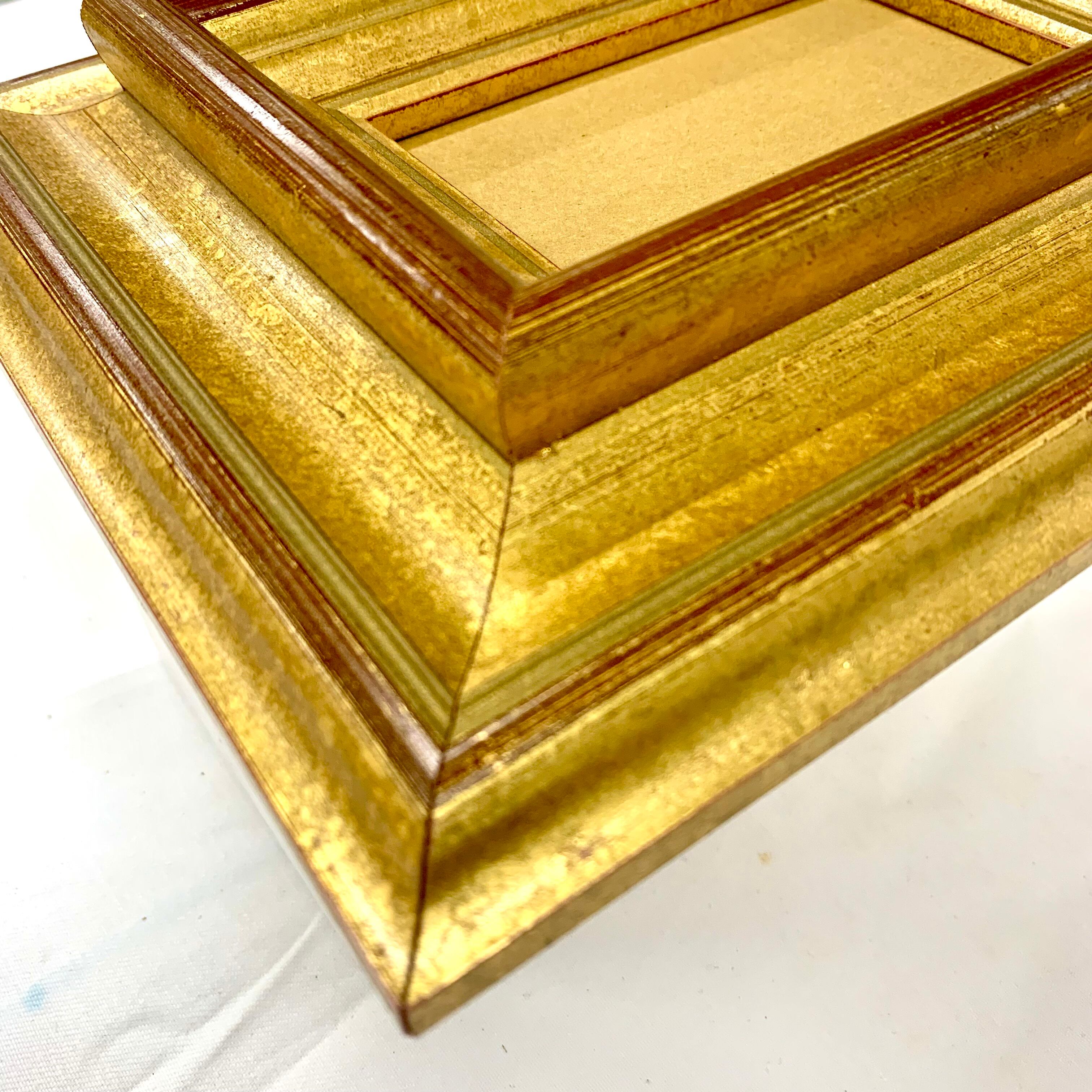 高さのあるアンティーク金の額縁です。油絵作品、刺繍などマチエール豊かな作品も入れることが出来ます。