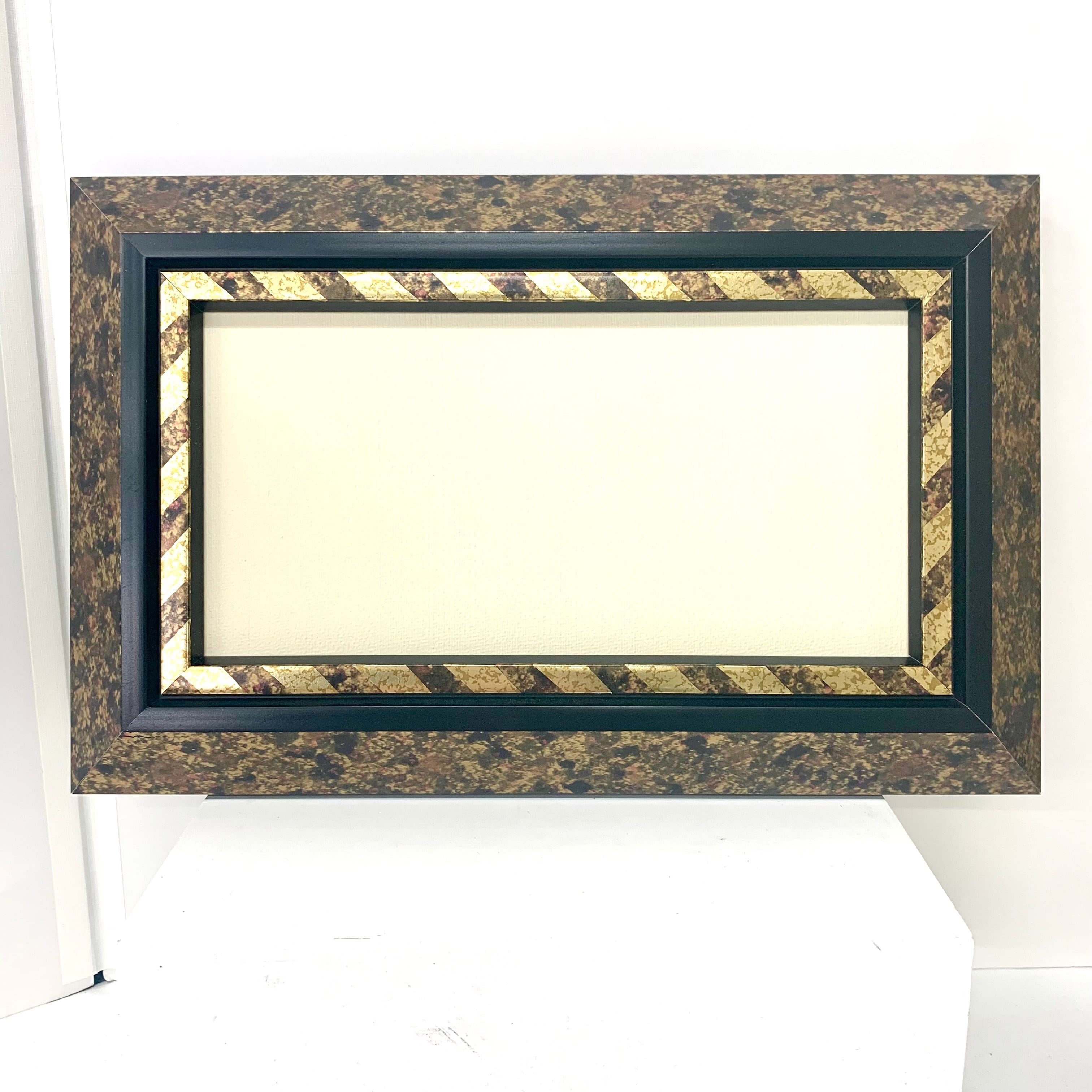 アーバンな雰囲気の黒金の額縁です。水彩画だけでなく水墨画のようなモノクロ作品、また七宝など工芸作品にもおすすめのミニ額縁です。